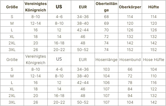 Lieferumfang: 1 x Oberteil, 1 x Hose